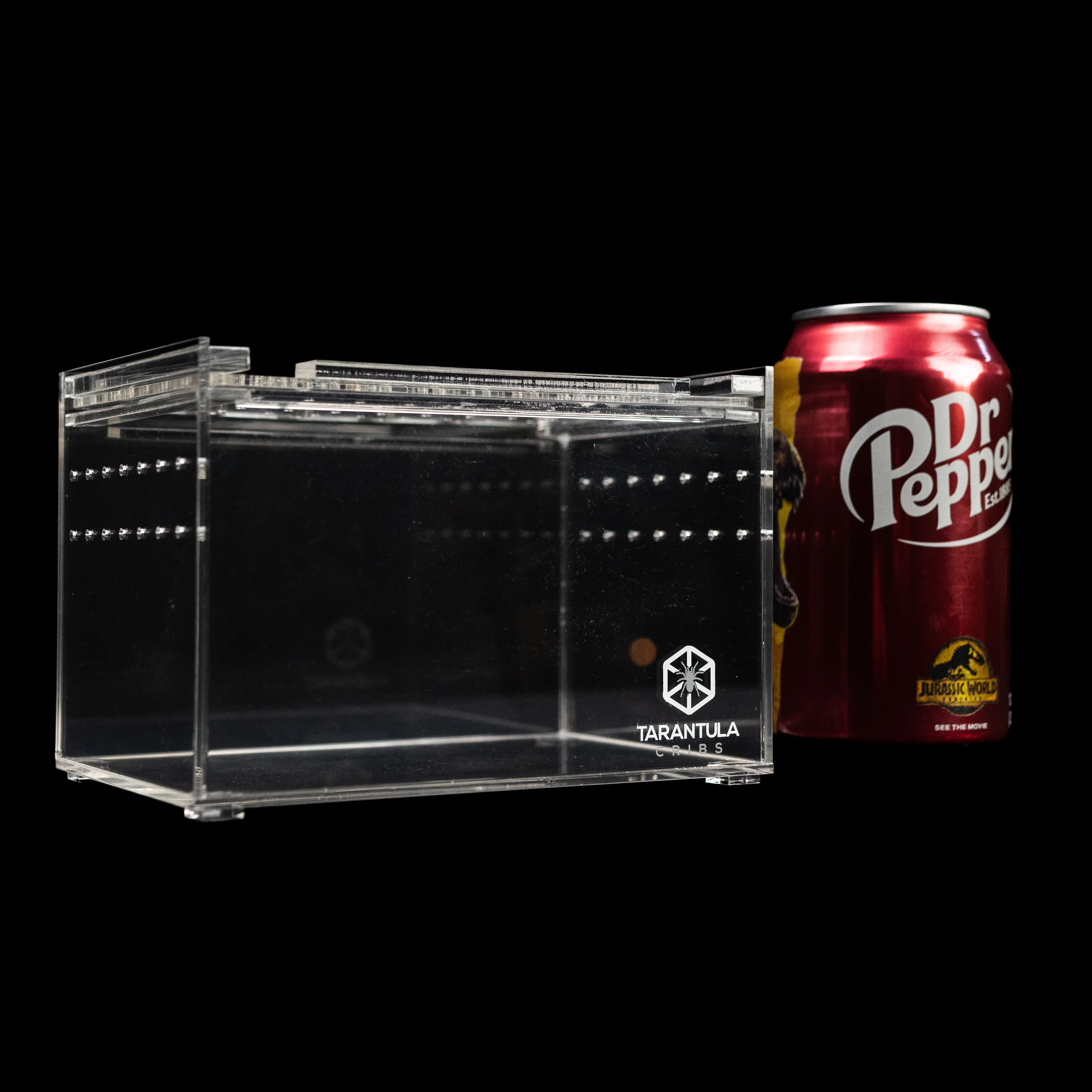 The Small Slider Crib is a sleek and functional enclosure designed for spiderlings, juveniles, or dwarf tarantulas. This compact and stackable design makes it perfect for keepers with multiple enclosures.